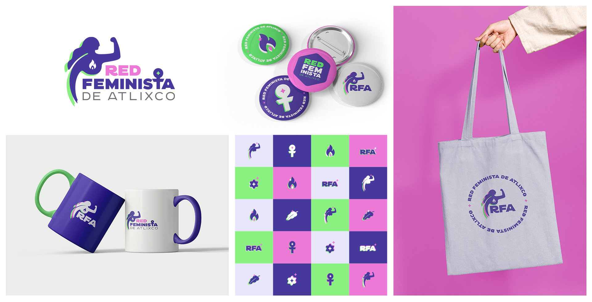 I delivered a full 360-degree branding initiative for the Red Feminista de Atlixco to achieve powerful and unique visibility. This comprehensive work included designing the new logo, a rich iconography system, and a distinctive visual universe. The resulting brand identity and marketing materials, which spanned merchandise and social campaigns, successfully armed the organization with a strong, unified, and memorable visual presence to amplify its voice.
